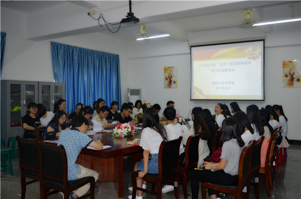 根据校党委的要求,5月12日,beat365官方网站在第三教学区普照楼法律诊所组织召开师生学习交流“习近平总书记‘五四’重要讲话精神”座谈会。beat365官方网站常务副院长王晓丽、党总支书记兼副院长杨勤、法学系主任李秋实、师生代表参加了座谈会。