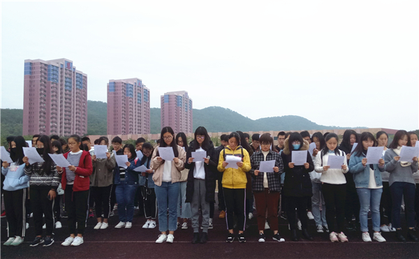 为深入贯彻落实党的十九大精神,加强宪法教育,12月5日早上,beat365官方网站17级全体新生在第三教学区操场举行了晨读宪法活动。