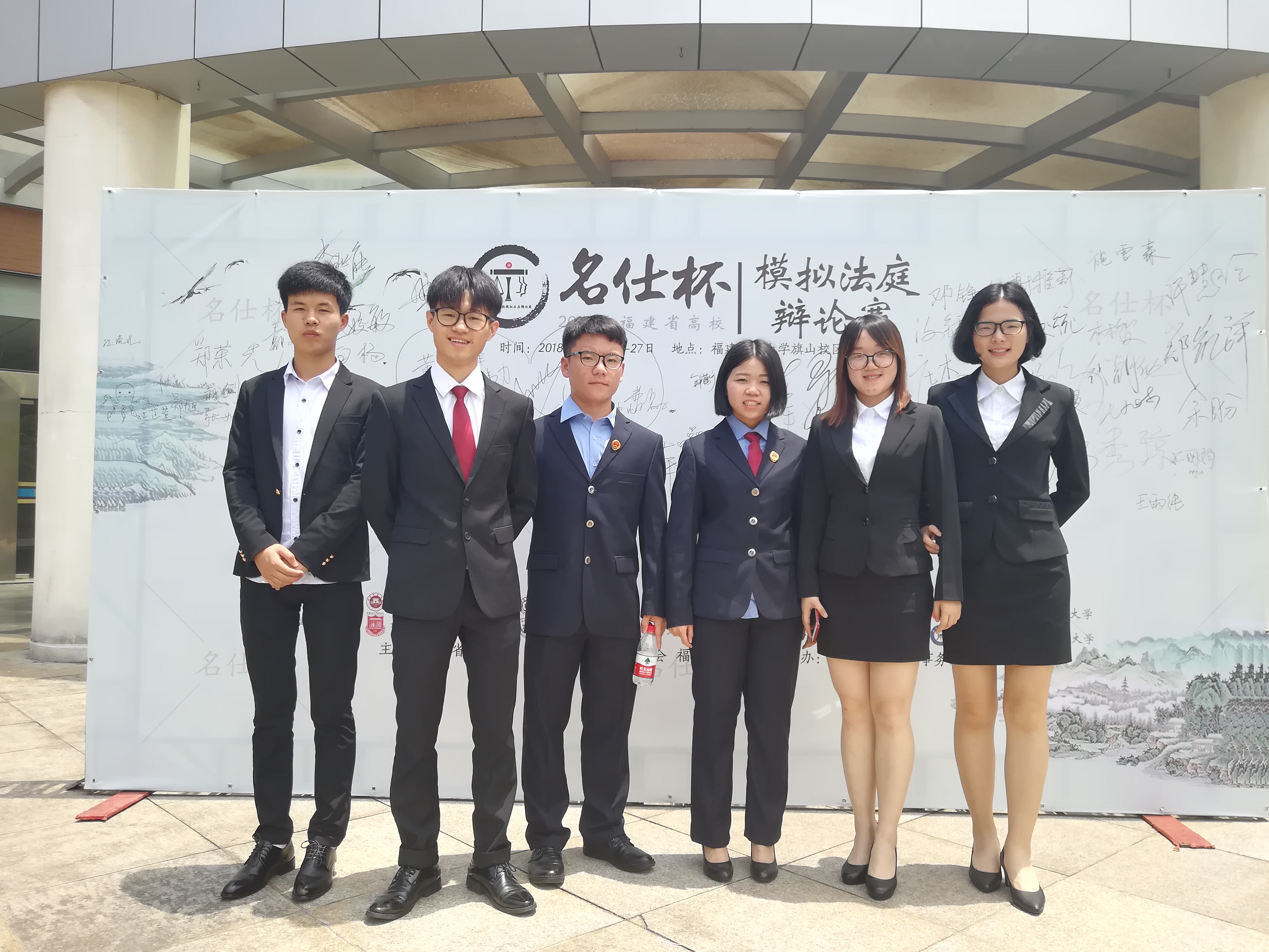 5月26日、27日,beat365beat365官方网站代表队(艾飞燕、王文芳、林振文、林鸿新、吴婷婷、余昌锭)在beat365官方网站教师陈琳带领下,前往福建师范大学旗山校区参加第五届“名仕杯”福建省高校模拟法庭辩论赛并获得优秀奖。