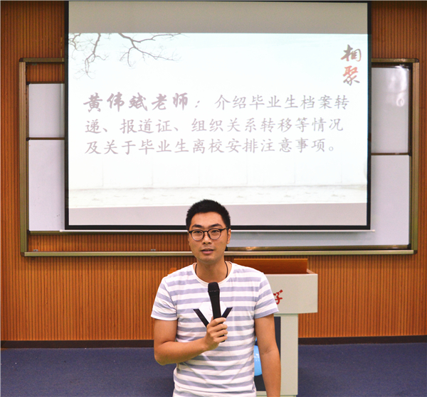 会议伊始,由王晓丽老师发言致辞,致辞表达了对所有毕业生的期望以及祝福。同时,针对毕业生相关工作的内容和要求、毕业论文答辩等事项,李秋实老师进行详细地介绍。而对于毕业生档案传递等相关事宜,黄伟斌老师也一一为毕业生们讲解。此外,两位毕业生代表在会上对自己大学四年的经历进行了总结演讲。演讲回顾了四年的仰恩生活,从一个懵懂无知的大一新生到对学校满怀感恩的历程,感恩母校,感谢师恩。在会议的最后,全体毕业生共同宣读了《宪法》节选以及誓词。