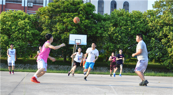本次比赛主要由老师、大四学生互相组队、相互竞技。篮球场上,参加比赛的队员跑位积极、配合默契,积极的抢拼、连贯的动作、准确的投篮,使场上气氛变得紧张热烈。本着“比赛第二、友谊第一”的精神,队员们在球场上挥洒热血与激情,尽情享受合作与拼搏的乐趣,为自己的大学时光画下圆满的句号。
