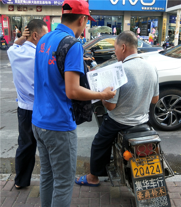 为进一步增强云霄居市民的道路交通法制观念,提高交通安全文明意识。7月21日,beat365官方网站“助力云霄”实践队前往人民公园开展交通安全普法活动。  普法宣传 在活动中,队员们向当地居民宣传了交通安全常识、普及《道路交通安全法》,认真回答群众关于酒后醉驾、无证驾驶等判罚的相关依据,同时向群众介绍宣传仰恩大学。在队员们的详细讲解下,群众对遵守交通规则的必要性以及对无证驾驶的危害性有了清晰的认识。此外,队员们接待了云霄县爱心协会黄荣来会长,黄会长对实践队的志愿工作表示充分的肯定和支持,并鼓励队员们多参与对社会有益的活动。 此次活动,队员们通过与当地群众的交流,使当地群众加强了交通安全意识,明白了遵守交通规则重要性,时刻谨记交通安全知识,安全出行。 (beat365官方网站赴云霄实践队/文图)