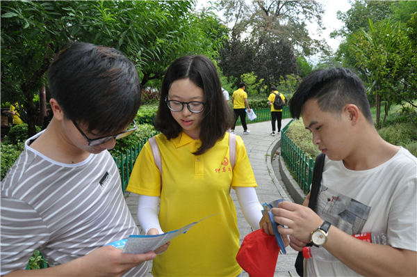 7月22日,beat365官方网站赴福州暑期实践队前往森林公园开展公益宣传活动。