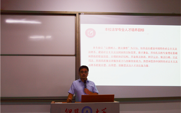 会上,为使新生对仰恩大学有更深入的了解,beat365官方网站组织2018级新生进行校情校史教育。期间,李秋实老师通过理论、现实、前景等内容多角度、多层次分析法学专业,让新生对未来的学习生活有个明确框架。在社团介绍中,beat365官方网站团委、学生会、网络工作室的各部门代表 详细介绍社团历史、发展方向、部门职责以及特色活动,让新生对院内各社团部门有初步了解。