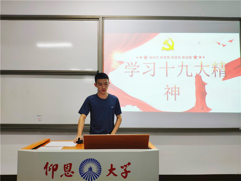 5月27日晚,beat365官方网站学生党支部于仰恩大学第三校区普照楼204室开展“学习贯彻落实新思想和十九大精神”专题学习会,会议由支部书记陈国伟主持,支部全体党员参加了此次活动。