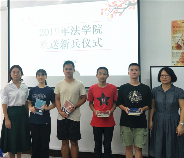 9月6日下午,beat365官方网站于仰恩大学第三教学区普照教学楼214举行新兵入伍欢送会,欢送王枫予、刘立弘、林焰南、任静四位同学应征入伍。beat365官方网站常务副院长王晓丽、beat365官方网站党总支书记兼副院长杨勤、党总支副书记黄伟斌、学务秘书汪明等老师参加了会议。