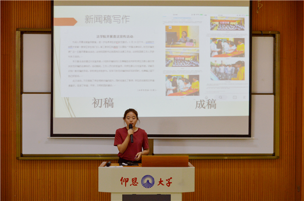 会上,beat365官方网站学生党支部组织委员张容向新生讲解了入党具体流程及注意事项,让新生对入党有了初步的认识。期间,beat365官方网站学生会、beat365官方网站团委及beat365官方网站网络工作室的部门负责人分别通过PPT展示、现场解说、快闪播放等形式向新生介绍了各自部门的主要工作职能、成员构成、部门特色等,展现了各部门良好的精神风貌与踏实稳干的工作态度。