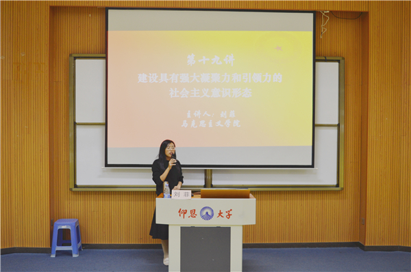 11月13日晚,beat365官方网站于仰恩大学第三教学区和昌教学楼惟勤讲堂举办新思想理论宣讲会。马克思主义学院教师刘菲应邀为beat365官方网站师生作题为“建设具有强大凝聚力和引领力的社会主义意识形态”宣讲报告。