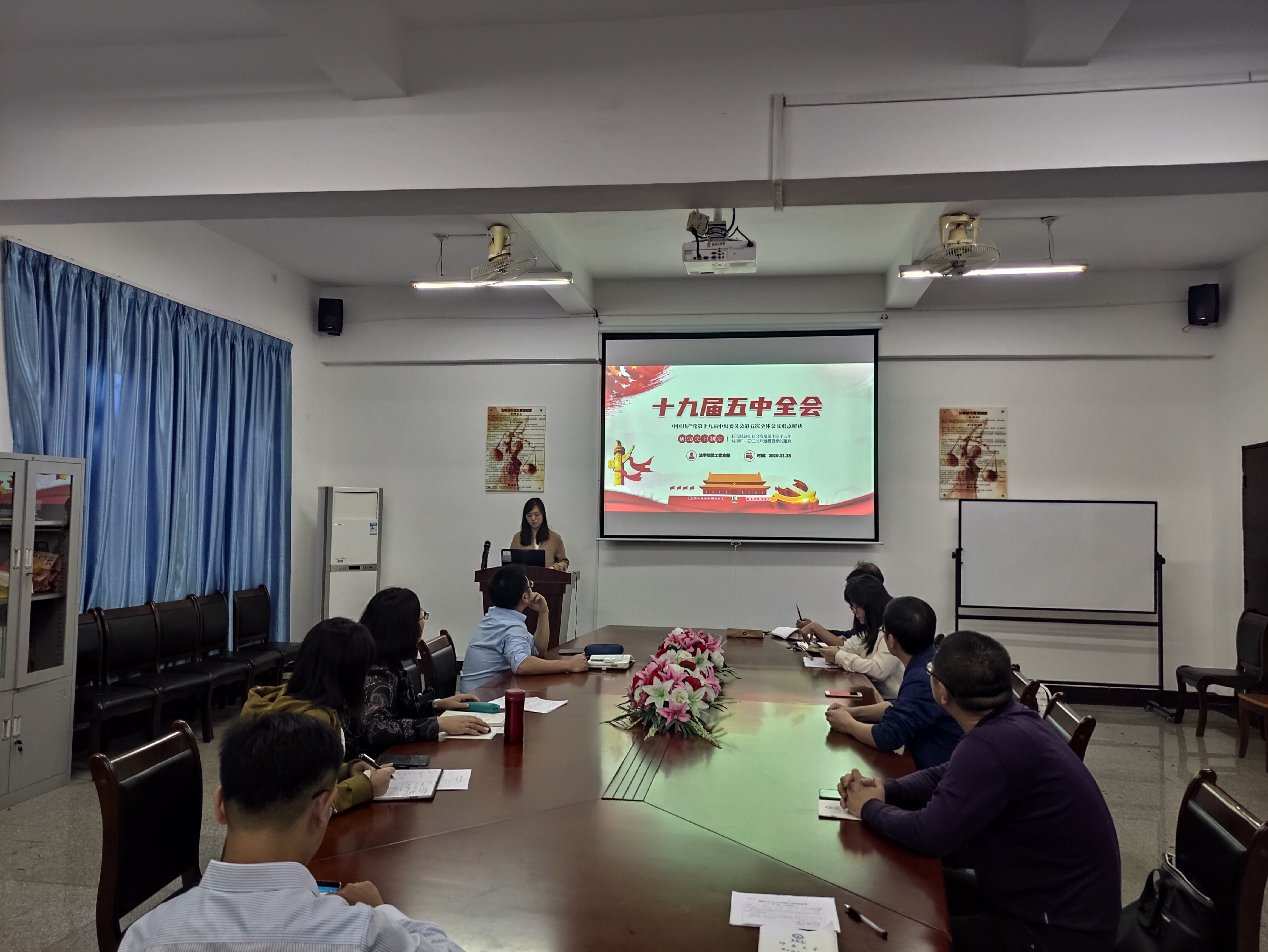 为深入学习十九届五中全会精神,11月18日下午,beat365官方网站教工党支部组织全体教师党员在仰恩大学第三校区普照教学楼法律诊所召开“十九届五中全会精神解读”主题学习会,会议由支部书记林媛主持。