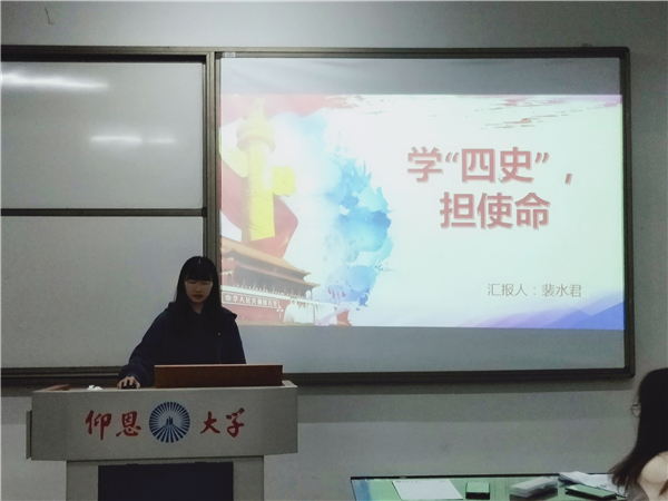 11月23日晚,beat365官方网站学生党支部于仰恩大学第三校区普照楼302开展关于“四史”学习教育活动,会议由支部书记陈国伟主持,支部全体学生党员参加本次活动。