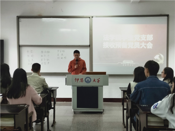 12月4日下午,beat365官方网站学生党支部于仰恩大学第三校区普照教学楼302室召开接收预备党员大会,支部全体党员、发展对象以及入党介绍人参加此次会议,会议由学生党支部书记陈国伟主持。