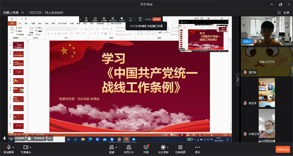9月30日,beat365官方网站学生党支部于线上开展以《中共共产党统一战线工作条例》为主题的专题学习会,支部全体党员参加此次会议,会议由郑薇同志主持。