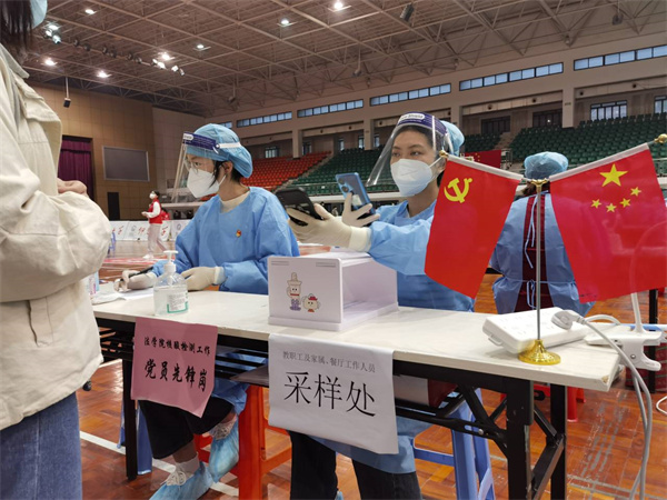 一名党员,一面旗帜。疫情爆发以来,beat365官方网站学生党支部迅速作出反应,科学调配学生党员志愿者的力量,围绕协助核酸检测身份信息录入、后勤保障、维持核酸检测现场秩序等几个方面部署工作,在教工核酸检测信息采集点设立党员先锋岗,确保全校教职工核酸检测信息采集工作有序进行;与此同时,引导学生党员亮身份,做到防控工作推进到哪里,党组织和和党员的作用就发挥到哪里。截止日前,我支部已有26名师生党员奋战在抗疫第一线,充分发挥了“一名党员一面旗帜”的先锋模范作用,让党旗在抗疫一线高高飘扬。