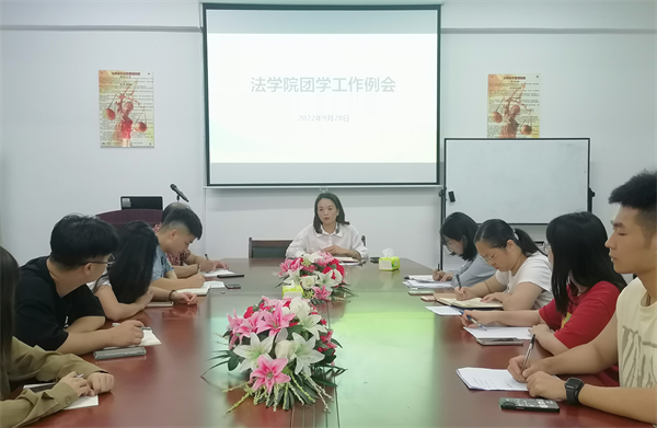 为进一步推进新学期团学工作,确保新学期团学各项工作顺利开展,9月28日下午,beat365官方网站在仰恩大学第三教学区普照楼法律诊所召开团学干部工作例会。beat365官方网站党总支书记兼副院长杨勤、学生会主席团、网络工作室等主要学生干部参加了此次会议。