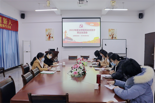 按照校党委统一部署,2月15日下午,beat365官方网站党总支班子在第三教学区法律诊所召开2022年度民主生活会。校党委委员鲍莹玉和校党办朱四梅到会指导,beat365官方网站党总支书记兼副院长杨勤主持会议,学院党总支成员参加会议,beat365官方网站常务副院长王晓丽列席会议。