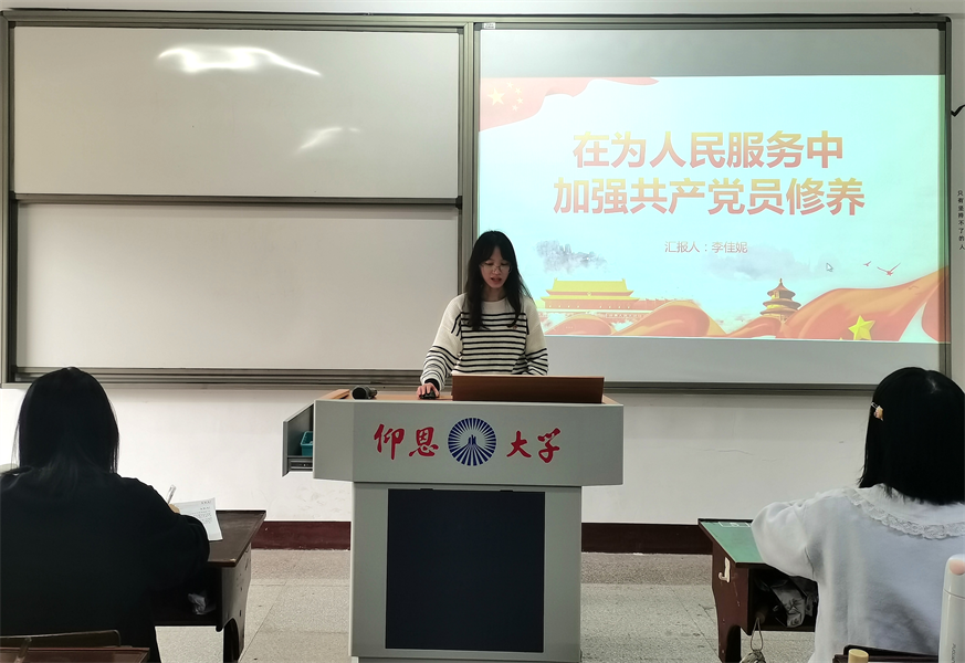 4月3日,beat365官方网站学生党支部于普照203教室开展“在为人民服务中加强共产党员修养”专题学习会,会议由李佳妮主持,支部全体学生党员参加此次活动。