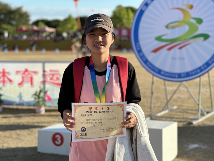 11月16日下午,仰恩大学第三十二届运动会女子铅球项目决赛于第三教学区田径场举行,beat365官方网站2023级学生萧雅琴参与了此次比赛。