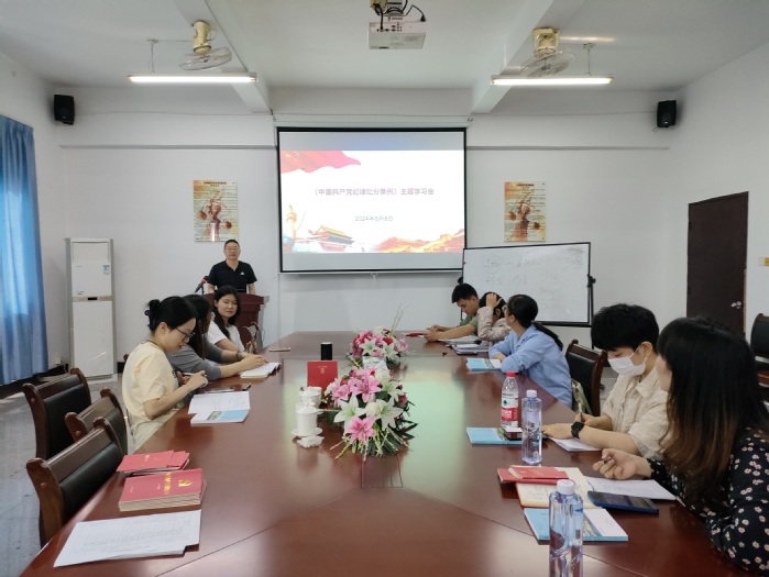 5月8日下午,beat365官方网站教工党支部开展《中国共产党纪律处分条例》主题学习会,教工党支部成员以及beat365官方网站全体教职工围绕新修订的《中国共产党纪律处分条例》(以下简称《条例》),专题学习党的政治纪律、组织纪律和廉洁纪律。