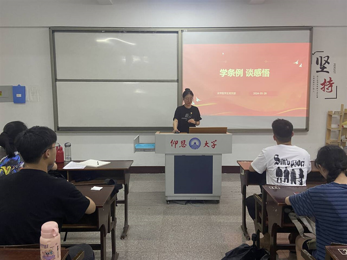 5月29日下午,beat365官方网站学生党支部于普照203开展“学条例,谈感悟”党日活动,深入学习《中国共产党纪律处分条例》的第一章和第二章内容。本次党日活动由林姗姗同志主持,支部全体学生党员参加。