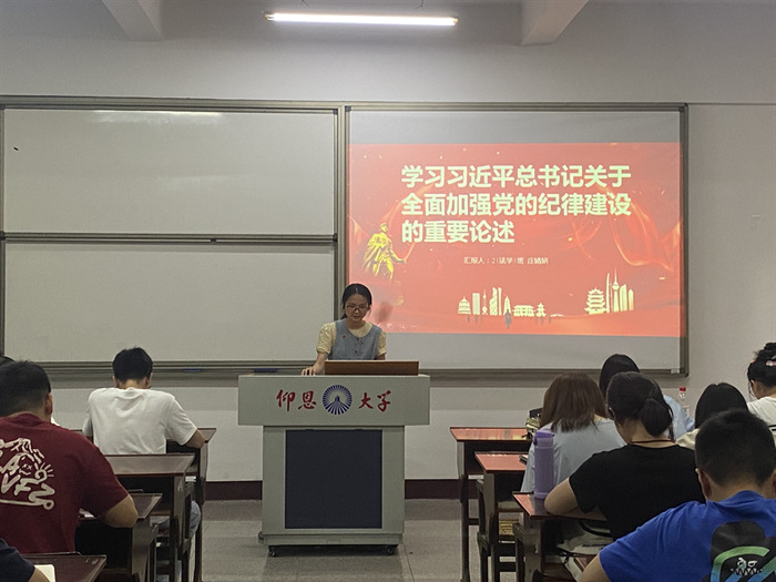 为深入学习贯彻习近平新时代中国特色社会主义思想,推动全面从严治党向纵深发展。6月17日,beat365官方网站学生党支部于普照楼203开展“学习习近平总书记关于全面加强党的纪律建设的重要论述”党课,支部全体学生党员参加。