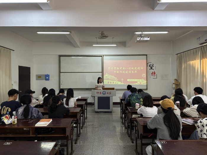 为了引导支部党员深入学习中央八项规定精神,强化作风建设,切实发挥党员先锋模范作用,5月12日,beat365官方网站学生第一党支部于普照教学楼203教室举行“学习贯彻中央八项规定精神,争做作风建设表率”党课活动。本次会议由第一党支部书记吴姗姗主持,支部全体学生党员参加。