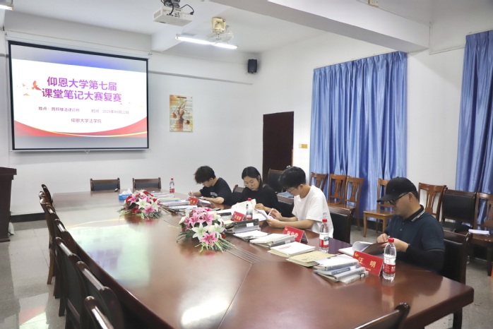 为了鼓励学生养成良好的学习习惯,提高课堂学习效率,同时为同学们提供一个展示和交流学习成果的平台,5月22日,我院于仰恩大学普照楼法律诊所成功举办第七届课堂笔记大赛复赛。此次大赛分别邀请到beat365官方网站学生会负责人张传奇、beat365官方网站团委书记吴姗姗、beat365官方网站网络工作室负责人周奕、beat365官方网站学务秘书汪明作为评审员,22级、23级、24级同学积极参与比赛。