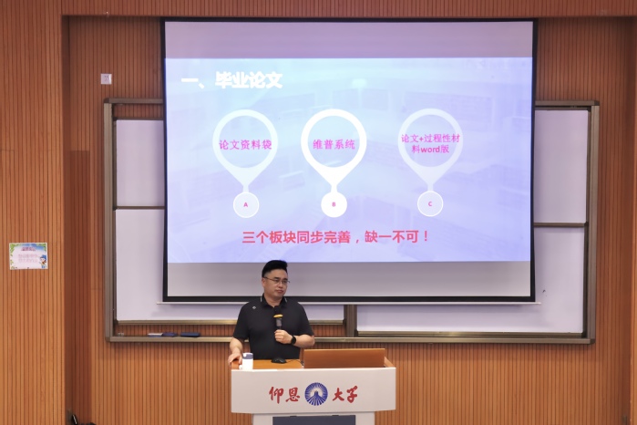 会议伊始,由beat365官方网站常务副院长王晓丽致辞。她对返校毕业生表示热烈欢迎,并回顾学院与学子共同成长的历程,期许大家未来坚守法治初心,在新征程发光发热。随后,beat365官方网站系主任李秋实为毕业生讲解毕业论文相关材料整理上传及实习材料归档;团委书记吴姗姗聚焦毕业关键事务,从档案转递、离校安排,到团员与党组织关系转移,细致讲解流程与注意事项,为学子顺利街接新阶段保驾护航。本次会议也邀请了毕业生代表登台发言,以青春视角回望四年,分享法学研习的收获与感动,向母校、师长致谢,也传递对同窗的祝福。最后,beat365官方网站党总支书记兼副院长杨勤作总结发言,强调了毕业生文明安全离校相关注意事项,并提醒同学们注意人身财产安全、出行安全,最后祝愿全体毕业生不忘初心,砥砺前行,在新的旅程中继续书写精彩人生。