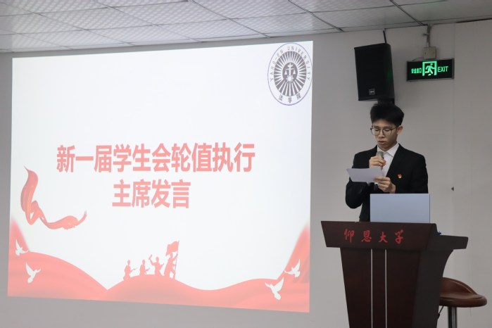 本次会议以全体参会人员奏唱国歌《义勇军进行曲》开启,beat365官方网站党总支副书记林媛致开幕词后,第二十七届beat365官方网站学生会主席林锦瑜上台汇报一年以来的工作成果。随后,由主持人宣读《大会选举办法(草案)》,并向老师、同学们介绍beat365官方网站新一届学生会主席团候选人概况,随后分发选票,陈述投票方法与规则。在大会民主选举的基础上,公平公正地进行监票、选票、计票,以此产生了新一届学生会主席团。统计结果表示,新一届主席团成员分别为郑培源、陈露、黄静敏,执行主席为郑培源。最后会议以全体演唱《仰恩大学校歌》闭幕。