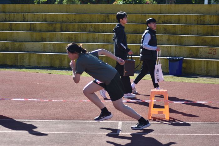 作为兼具爆发力与耐力考验的短跑项目,200米赛道的每一米都充满挑战。赛前,刘子瑄早早抵达赛场,认真做好热身训练,眼神坚定地熟悉赛道环境,全力调整至最佳状态。发令枪响,刘子瑄瞬间蹬地起跑,强劲的爆发力让她迅速跻身前列。弯道处,她精准调整身体重心,保持高速的同时稳稳把控节奏;直道冲刺阶段,她顶住对手压力,摆臂幅度持续加大,步伐愈发铿锵有力,最终以利落姿态冲过终点线,将季军荣誉收入囊中。